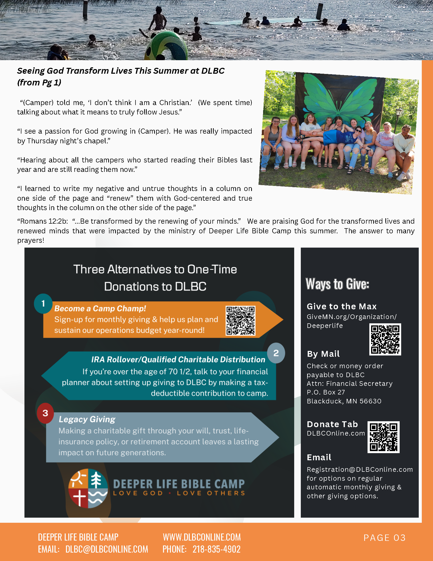 Deeper Life Bible Camp - where relationships are made, lives are changed, and God is honored. You belong here!